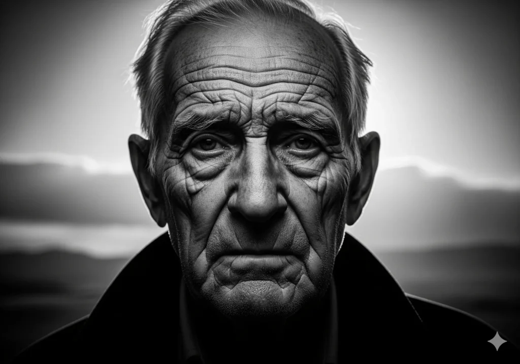 Prompt – Create a highly detailed, Photorealistic, high-quality photography of **Photorealistic close-up portrait of an elderly man with wrinkles, detailed skin texture, cinematic lighting, 8k.”**.
